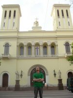 Не помня себя, мы добежали до навеса какого-то кафе. Обернувшись, мы увидели, как ветер срывает зонты, крушит пластиковые столы и стулья, просто бушует... Было холодно и очень мокро... Как выяснилось, у нас был ровно один комплект сухой одежды в рюкзаке, который решили одеть на меня, как на самую мерзнущую. Штаны Нео и футболка Смита - меня беспокоили лишь полные воды кроссовки. Буря, наконец, улеглась и даже выглянуло солнце. Мы попросили кого-то сфотографировать нас в нанешнем нелепом виде, подождали еще чуть-чуть и двинулись к станции, дрожа и хлюпая.