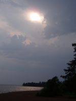 пришла наглая холодная тучка. Не то, чтоб мы расстроились... Мы со Смитом решили совершить заплыв, тогда как Нео из чувства собственной важности купаться не полез - вода была мягко говоря грязная и зеленая. Уже прилично отплыв от берега, мы обнаружили страшную грозовую тучищу, которая кидалась в море молниями и уже успела накрыть маячащий на горизонте Питер. Когда мы наперегонки с тучей приплыли к берегу и вышли из воды, с неба уже слетали крупные холодные капли и врезались в песок, оставляя маленькие кратеры. Мы еще успели пофоткаться и спрятать технику в непромокаемый рюкзак. Дождь на удивление быстро перестал. Мы стояли на границе пляжа и леса, обсыхая и любуясь солнышком, на мгновенье появившимся в просвет туч. Как только мы решили двинуться в сторону электрички, откуда ни возьмись полил страшнейший ливень! Не помогало покрывало, которым мы накрылись, не помогали ветки деревьев, за которыми мы пытались укрыться. До станции пешком минут двадцать, поэтому нам надо было срочно в укрытие. Ближайше укрытие было в 7 минутах ходьбы по пляжу.